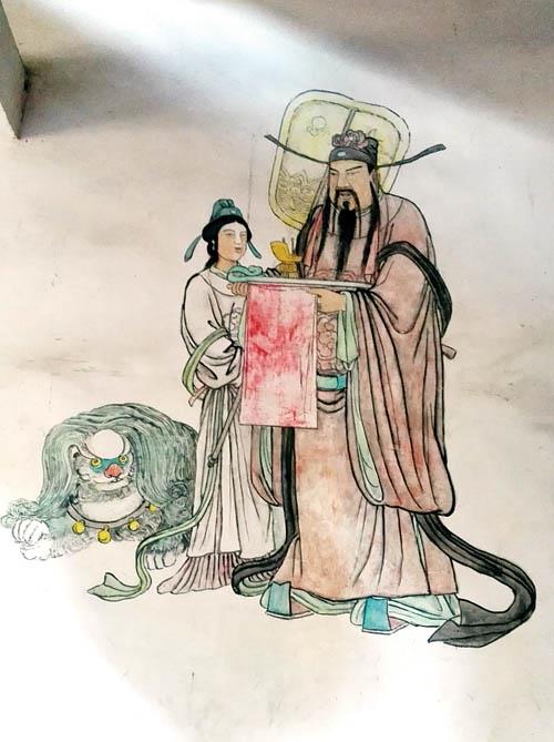 华亭乡野何其有幸,几个宫庙尚存名画家周秀廷先生所作壁画。乡野壁画,竟与人民大会堂《松鸽颂》巨型堆漆屏风同出其手,幸甚幸甚!