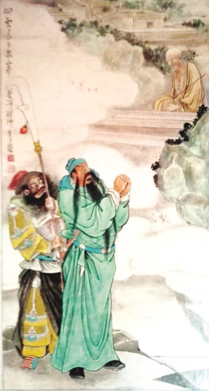 ▲《关云长玉泉山参菩净禅师图》,署款:秀廷。