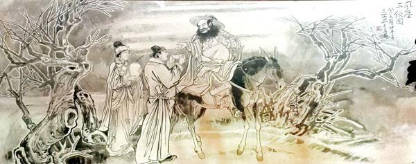 ▲款识:三顾难酬九土尘,出师未遂愧为臣。匡时局定三分鼎,扶汉徒劳一粟身。庚辰年孟夏之月山人秀廷画。