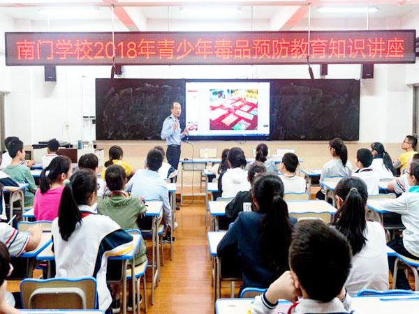 本报讯 近日,凤凰山派出所社区分管领导陈立炜深入南门学校为在校师生上一堂“禁毒”为主题的法制课。课上,凤凰山派出所社区分管领导利用PPT形式,针对未成年人的心理特点,使用通俗易懂的语言,向师生们详细讲解毒品种类、吸食危害、对吸食毒品行为处罚法律依据、介绍生活中如何识别毒品、做好毒品的预防及拒毒的技巧等方面内容,运用发生在本地及身边真实而典型的案例详析毒品的危害,用铁的事实突出广大师生禁毒的重要性,帮助其树立抵制毒品诱惑的意识和决心。 (柯益妹)