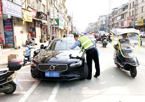 民警针对辖区实际情况,集中在农贸市场、交叉路口、饭店门口等违规停车多发地段进行整治。对路边违规停车的车主进行了劝导,引导车辆驾驶人按规定地点停车,并对不听劝阻或长久停放的车辆进行了贴条处罚,做到发现一辆,处罚一辆。