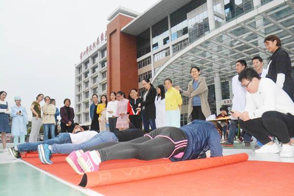 本报讯 11月15日,莆田学院附属医院医务部联合共青团在新区门诊广场举办跳绳和平板支撑趣味赛,吸引不少市民现场围观。