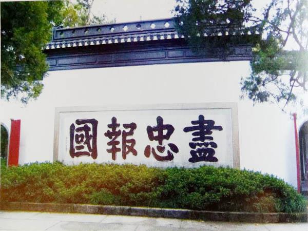 杭州岳飞墓壁上洪珠手书“尽忠报国”四字大字