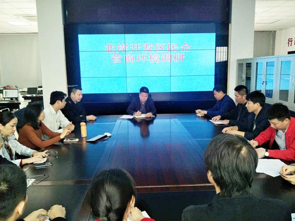 本报讯 为深入了解民营企业对“放管服”改革政策和营商环境的认知度、满意度,及时发现“放管服”改革在实践中所遇到的问题,了解民营企业营商环境现状、企业市场需求及面临的现实问题,聆听中小民营企业对“放管服”改革的期盼和建议,为领导决策提供参考。11月23日,市食药监局林群芬总监带领市局相关科室负责人深入北岸开发区开展民营企业营商调研,与基层监管部门、食品企业、药品医疗器械企业就如何优化食品药品行业营商环境,服务企业发展举行座谈。