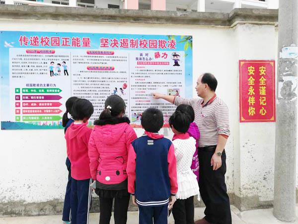 该校以班级为单位,由班主任带领学生往学校宣传栏处进行观看,并讲述了“什么是校园欺凌、校园欺凌的主要行为、我国校园欺凌现况、校园欺凌的危害、面对暴力我该怎么办”等方面的内容,通过教师讲解向学生渗透,要求教师讲深讲透,及时向学生传授安全知识。