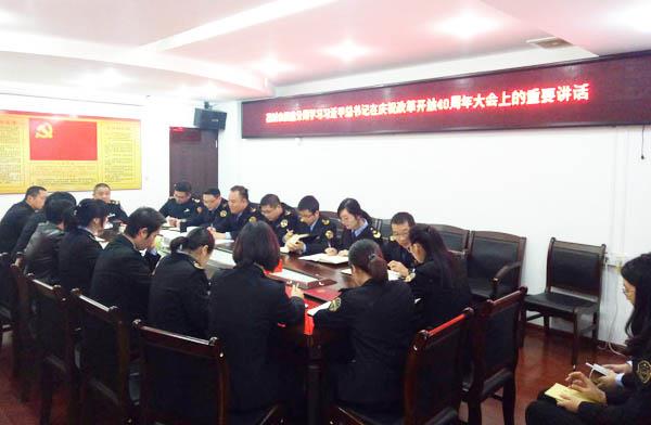 本报讯 12月24日,荔城食药监分局召开集中学习会议,会议传达学习了习近平总书记在庆祝改革开放40周年大会上的重要讲话精神。陈鸿霖局长强调,全局上下要深入学习领会总书记讲话精神,坚决贯彻落实,紧紧围绕党中央关于改革开放的决策部署,全力抓好食品药品安全监管工作,服务辖区食品药品民营经济发展。 (林芳 田野)