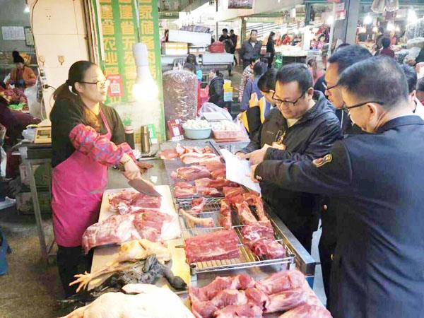 本报讯 继全国加强非洲猪瘟防控工作电视电话会议后,为保障辖区内猪肉品质量安全,龙桥食药监所在分局的统一部署下,联合镇食安办、食品安全员、市场管理员在辖区内展开生猪肉及其产品专项检查行动,加大专项工作力度,严控食品安全风险,守护好人民群众的饮食安全。