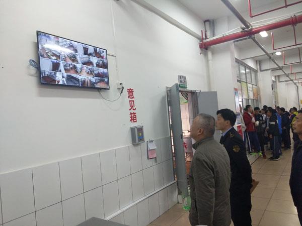 镇海食药监所工作人员察看“明厨亮灶”食堂公示情况