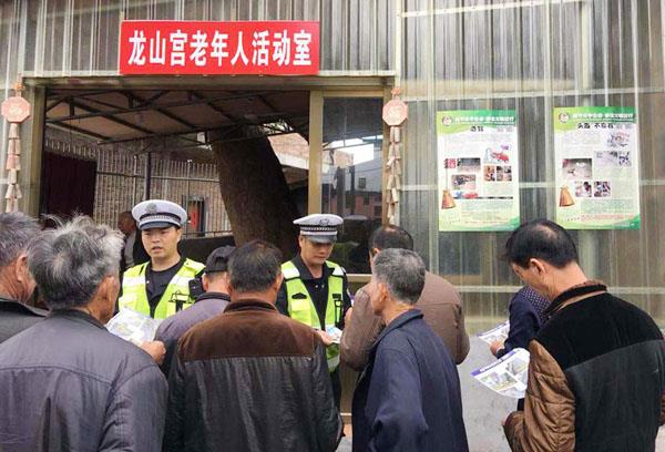 为全面提高广大农村群众交通安全意识和遵章守法理念,切实预防农村道路交通事故发生,近日,仙游县大济派出所教导员黄玉荣带队深入辖区坑北、莆山村龙山宫老年人活动室开展交通安全知识宣传。