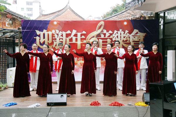 迎新年音乐会在文化馆的十音八乐队演奏的《海峡妈祖》、《采茶舞曲》等音乐拉开了序幕。伴随着一个多小时的女生小组唱、男生小组唱、男女生二重唱、男女生独唱、混声合唱以及舞蹈等节目,带着对广大市民群众美好的新年祝福,大家都沉寂在美妙的音乐中,不时传来听众的热烈的掌声。