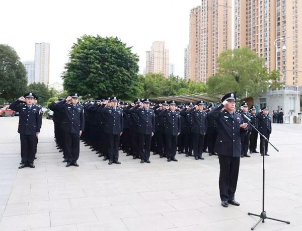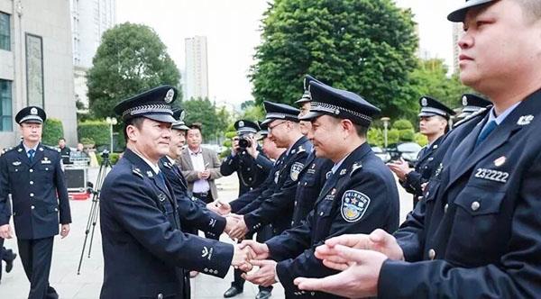 当日上午8点30分,边防支队转改官兵身着警服崭新亮相在市公安局大院。换装民警精神饱满、士气高昂、队列整齐、警容严整、现场气氛庄重热烈。
