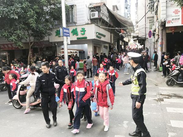 本报讯 日前,仙游县鲤城街道综治(网格)中心的网格员、巡逻员及平安志愿者们分成多个小组,再次对道德中学、金石中学、城西小学、城东小学、附属实验小学等周边交通较为拥堵的学校开展交通劝导活动。身着红、蓝马甲的志愿者们有序指挥着校园门口的交通,维持校园周边交通秩序,护送莘莘学子安全通过马路;同时对校园周边占道停车、摆摊等行为进行规劝。在志愿者们共同努力下,校园周边交通秩序得到了很大的缓解,获得了家长及师生们的点赞。 (时报记者 林锦堂 通讯员 谢晶晶)