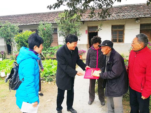 本报讯 日前,仙游县委文明办主任郑启法带领慰问组一行冒着低温前往度尾镇中峰村,慰问今年获评第五届福建省道德模范的百岁爱心老人黄文谦。