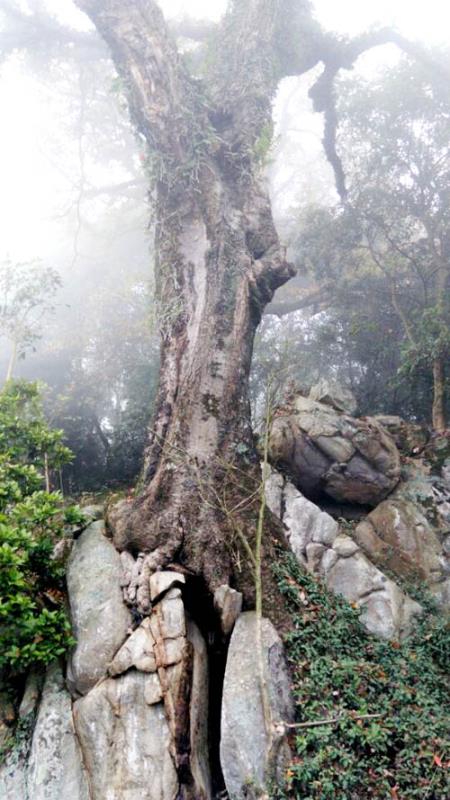 古树矗立巨石上千年不倒