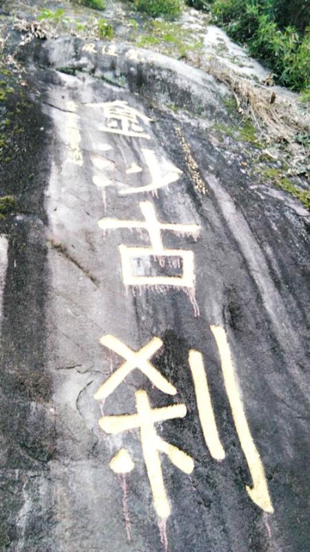 山道旁石壁所刻的“金沙古刹”