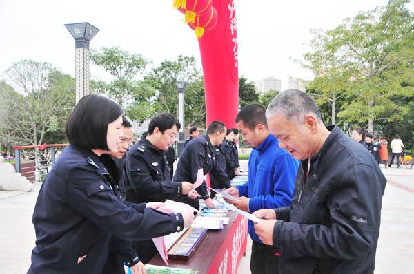 1月9日,霞林派出所联合城厢公安分局政工科、禁毒大队、户政科等部门在市区万达广场开展110宣传日活动。同时引导群众正确认识110和12345平台的职责,避免浪费公共资源。 (蔡建霞)