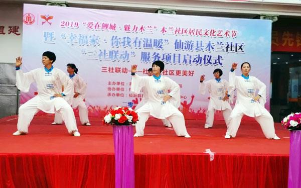近日,仙游县木兰社区居民文化艺术节暨莆田市仙游县“三社联动”试点项目启动仪式举行。活动现场,除了“三社联动”试点项目授牌,木兰女子腰鼓队、莆仙赞句“三社联动好”、旗袍秀《望月》、相声《说一不二》、健身操《导引养生功十二法》等由才艺特长的居民自编自演的文艺节目激情上演,标志着仙游县为创新基层治理模式率先在木兰社区开启“三社联动”试点,让社区治理更接地气啦!