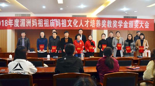 长期以来,湄洲妈祖祖庙董事会一直致力于妈祖文化的传播和发展。为培养优秀的妈祖文化人才,湄洲妈祖祖庙董事会在4年前和莆田学院开展密切合作,投入专项资金设立“妈祖文化人才培养奖教奖学金”,奖励妈祖文化人才培养教学与科研优秀的老师以及班级学习优秀的学生。