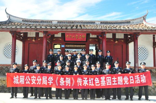 本报讯 近日,城厢公安分局组织机关基层24个支部的支委代表和2018年新发展党员,走进仙游县游洋镇中共上宫党支部旧址,开展学《条例》传承红色基因主题党日活动,深切缅怀闽中游击区革命先辈的丰功伟绩,接受革命传统教育。(陈宏)