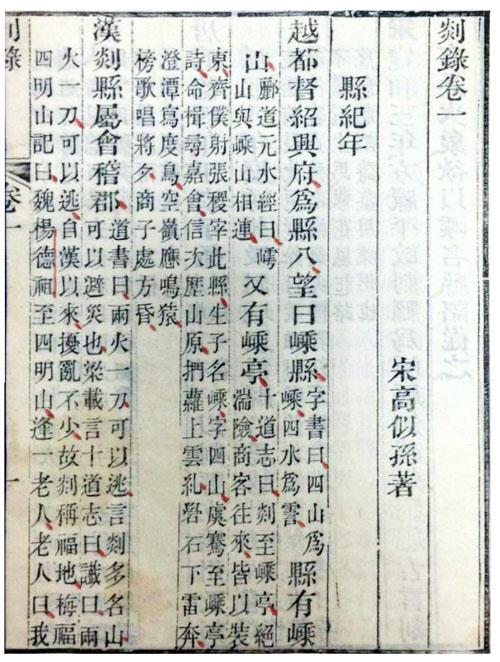 2.《剡录》:“剡县”本是汉代县名,唐代置嵊州并分置剡城县,宋初复设剡县。宣和三年(1121)以“剡”字由“二火一刀”组成,有兵火之象,于是改名嵊县,今属浙江绍兴嵊州市。《剡录》是以古县名命名,且称“录”而不称“志”,但实际是一部县志。此书今为十卷,嘉定初年,史安之知嵊县,命高似孙修纂,嘉定七年(1214)书成,次年刊行,清代被收入《四库全书》。