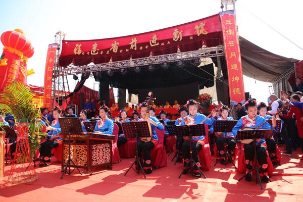 1月28日上午,由北高妈祖文化交流协会、北高东皋妈祖文化园管委会联合主办的“东皋村妈祖文化园天后宫落成庆典暨两岸妈祖文化交流活动”在荔城区北高镇东皋村寨顶山举行。当天,记者在活动现场看到,偌大的妈祖文化园内到处人头攒动、锣鼓喧天,一派浓郁的节日氛围,吸引了该镇近百个妈祖宫庙代表、当地村民及邻近群众前来参加、围观。