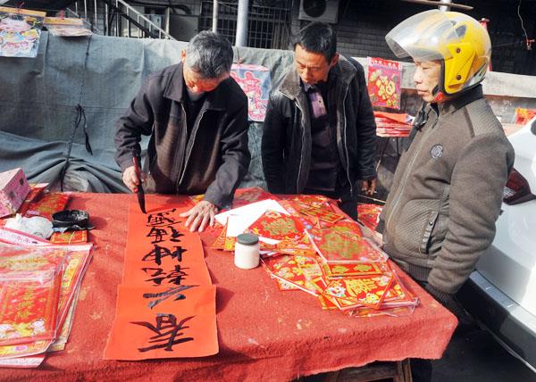 本报讯 春节来了,为给节日增添喜庆,过一个红红火火的快乐年,仙游县大济镇政府组织离退休老教师、老干部在该镇的大济街、龙坂、溪口点为居民免费代写春联、祝寿中堂、结婚请帖,给他们送去春节的祝福。(陈国松)