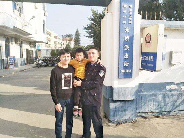 本报讯 1月31日下午3点许,东峤派出所接到群众到所求助称在东峤旧街附近发现一男孩迷路,在附近寻找家人无果后,带到派出所请求民警帮忙为小男孩找家人。值班民警看到小男孩一直哭,不断安抚他的情绪并给他菠萝干、坚果等零食,待小男孩情绪缓和后,告知民警知道自己爸爸的手机号码,无奈却少记了一位数,民警始终无法联系其家人。随后,民警将小孩照片发布在微信群,动员民警、网格员、巡逻员等通过微信群、朋友圈转发的方式,广发求助信息,希望认识的人主动联系警方。功夫不负有心人,东峤巡逻员队长许子洪在巡逻至东峤镇政府时,见诸多群众聚集议论,了解得知是有人丢了小孩。经照片确认正是派出所内急找家人的小男孩,巡逻员队长许子洪告知事主叶志刚该小男孩目前在东峤派出所内,并立即带领事主到派出所认领。