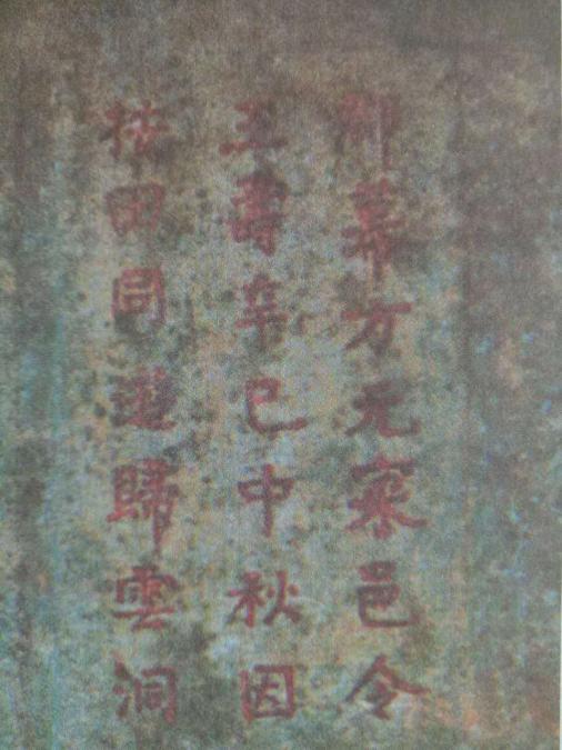 位于长乐市江田镇江田村灵峰山上灵峰寺附近归云洞内壁。摩崖高85厘米,宽50厘米。纵3行,楷书:“郡幕方元寀、邑令王寿,辛巳(宋徽宗建中靖国元年,1101)中秋,因按田(巡视农田)同游归云洞。”