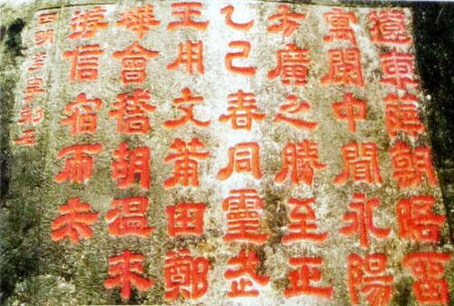 位于永泰县盘谷乡水尾村方壶岩。摩崖高205厘米,宽110厘米。纵4行,楷书:“薛子颙、王用文、郑宗晦、胡尊道来游。至正壬午(至正二年,1342)秋。”正文字径30厘米。