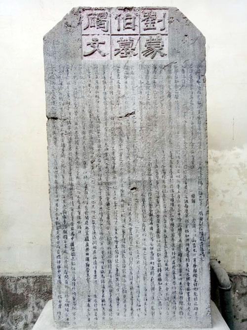 刘蒙伯墓碣原在福州北门外马鞍山苏家村刘蒙伯墓前,今移置市内于山碑廊。墓碣为花岗岩质,高181厘米,宽91厘米,厚20厘米。碣额隶书“刘蒙伯墓碣文”。碣文楷书,纵21行,字径3厘米。嘉祐六年(1061)四月十九日,枢密直学士、尚书礼部郎中、莆阳蔡襄撰并书,陶翼模刻。