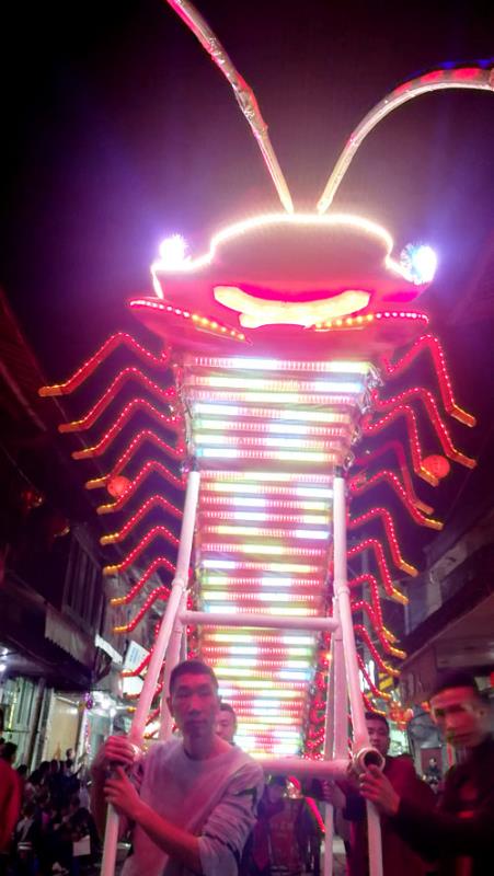 在三妈宫一带的街头,参与游灯的众多方阵,抓紧时间再作细致入微的彩排。那菜头灯精雕细琢,栩栩如生;那花架造型优美,妙趣生动,具有极强的民俗文化感染力和视觉冲击力。处处霞光,满堂春色,枫亭人民用自己的智慧,把丰收的果实雕琢成一个个造型,这些造型富有活力,情景交融,是他们心中愿景的一个化身。面对这么一道视觉盛宴,无论是当地人,还是他们热情邀请来的远方客人,都纷纷涌上街头,争相翘首一睹民俗芳容,他们啧啧称羡,仿佛走进春天的大观园,流连忘返,手机、相机频频聚焦着方阵。