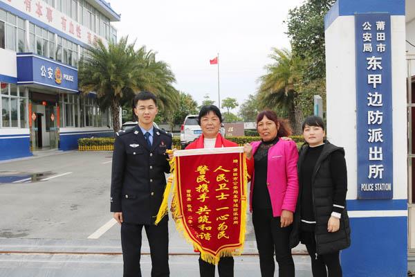 近日,荔城区黄石镇徐厝村居民谢女士持一面写有“人民卫士·一心为民,警民携手·共筑和谐”的锦旗专程来到荔城公安分局东甲边防派出所,对协助其妥善将精神病人家属送治就医的民警表示真诚地感谢。