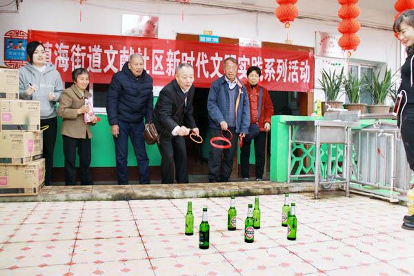 2月27日,镇海街道文献社区举办以“浓情闹元宵 文明乐不停”为主题的新时代文明实践,猜灯谜、套圈、手持乒乓球绕圈行走、麻将、扑克八十分、象棋等系列活动,让居民群众、社区党员和志愿者共享传统节日文化的盛宴。