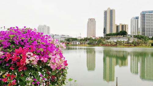 一曲阳春,步移景异。在接近市美术馆的广化路右侧,鲜艳的三角梅迎春怒放,层层叠叠的,红红火火的,美不胜收。再移步过去,就是经过彻底整治,已是焕然一新的钟潭溪了。瞧着那水光潋滟,心底愉悦之情顿生。