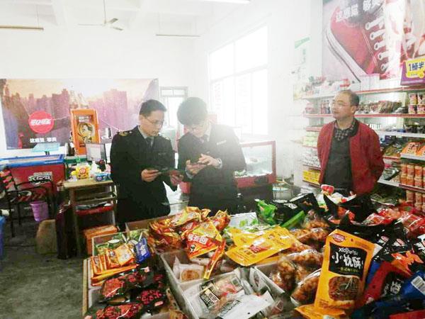 图为黄石食药监所执法人员正在开展“五毛食品”专项整治工作时的照片。 (黄林伟)