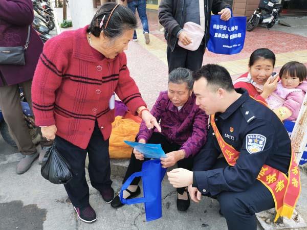 本报讯 日前,埭头派出所在辖内积极开展综治平安建设宣传月活动。该所宣传志愿民警走进沿街店面、公交车站等地,通过散发宣传资料、现场咨询答疑、分发礼品袋等方式,向过往群众普及扫黑除恶、防诈骗、平安建设和法制建设等有关知识。 (汤木芸)