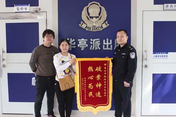 本报讯 近日,华亭派出所辖区群众林女士将一面烫有“破案神速 热心为民”金字的锦旗,送至派出所民警手中,对民警及时破案,帮其追回被盗财物,致以衷心感谢。 (林雅菁)