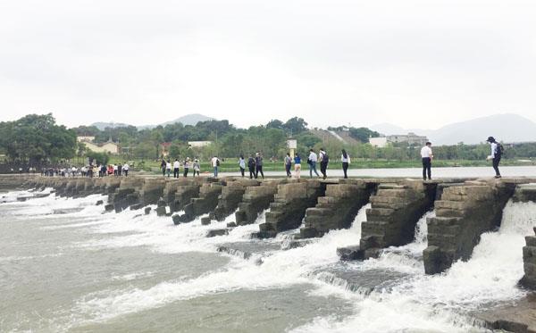 4月14日,莆田学院志愿者来到木兰陂,开展“关注木兰溪水质,保护母亲河常青”主题活动