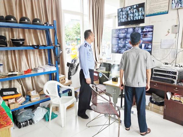 检查中,宋金耀所长以查问题、找隐患、促整改为重点,对学校的门卫制度、宿舍管理制度、消防设施配备、消防安全通道、学校监控系统运行情况、安全防范措施的落实、学校治安保卫力量配备、安全管理制度、物防技防设施等进行了全面细致检查对检查中发现相关隐患,现场督促校园安全负责人采取有效措施进行整改,及时堵塞漏洞,消除安全隐患,并就维护校园安全与学校领导进行了深入交流探讨,要求学校全面落实校园人防、物防、技防等防范措施,加强对校园出入人员、物品的安全检查登记,严防不法人员携带管制刀具等危险物品进入校园严防管理刀具等危险物品带入校园,着力提升校园安全防范能力设施,共同做好校园及周边安全工作,营造和谐平安有序的校园环境,推动校园建设再上新台阶。 (李靓)