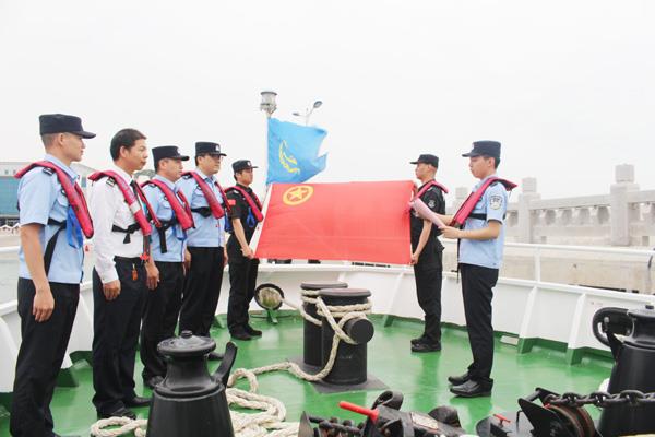 本报讯 为纪念“五四”运动100周年,日前,莆田出入境边防检查站执勤业务一科联合湄洲湾海事处,在海面艇上开展主题团日活动,引导青年团员坚定信仰、牢记使命。图为双方团员面向团旗,组织学习《习近平的七年知青岁月》节选,点燃心中青春火炬。 (吴志 陈锋 育俊)