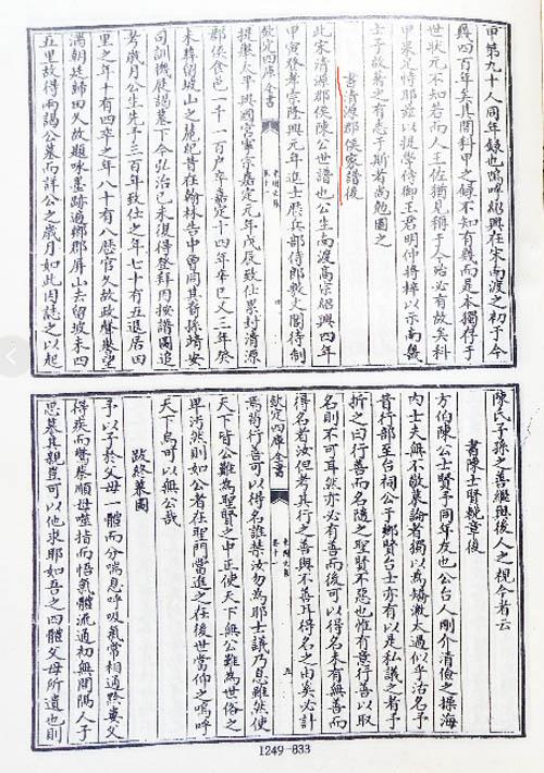 2019年4月底,笔者查阅清《钦定四库全书》中莆人著录,在明代户部尚书仙游郑纪(1433—1508)著《东园文集》卷十一题跋《书清源郡侯家谱后》一文中找到南宋陈谠生卒年的答案。现将此跋文录下:“此宋清源郡侯陈公(陈谠)世谱也。公生南渡高宗绍兴四年(1134)甲寅。登孝宗隆兴元年(1163)进士,历兵部侍郎,敷文阁待制、提举太平兴国宫。宁宗嘉定元年(1208)戊辰致仕。累封清源郡侯,食邑一千一百户。卒嘉定十四年(1221)辛巳。又三年癸未(1223)葬留坡山之麓。纪(郑纪)昔在翰林告中,曾同其裔孙靖安司训机展谒墓下。今弘治己未(弘治十二年,1499)复得登拜,因按谱图追考岁月,公生先予三百年(虚年三百年,1134—1433),致仕之年七十有五(虚岁七十五,1134—1208),退居田里之年十有四(虚年十四年,1208—1221),卒之年八十有八(虚岁八十八,1134—1221)。历官久,故政声誉望满朝廷。归田久,故题咏墨迹遍乡郡。屏山去留坡未四五里,故得两谒公(陈谠)墓,而祥公之岁月如此。因志之,以起陈氏子孙之善继,与后人之视今者云。”