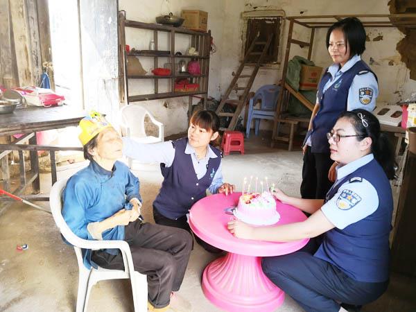 据悉,该包村网格员詹素红在下乡采集信息时,有路过就有看到老人家经常倚门盼望,眼神中带着忧伤,她不说人们也知道她在盼望着孙子们回来看看她,年轻人为了生活打拼无法顾全老奶奶的生活起居。为了添补老奶奶那颗缺少关怀与被爱的心,网格员们当日早早地为老奶奶准备了节日蛋糕和生活用品,看见格格们熟悉的面孔,老奶奶连声说:“孩子们,快进来坐坐。”当蜡烛点燃的时候,老奶奶高兴得像个孩子,烛光中的她是那样的慈祥幸福,时间在欢笑声祝福声中流逝,带着不舍我们与老奶奶告了别。 (时报记者 林锦堂 通讯员 林智军)