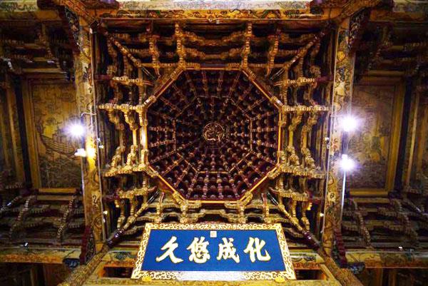 你瞧,整个文庙采用具有东方特色的歇山重檐式屋顶建筑,规制恢弘,形成一个庞大建筑群;文庙精湛的石雕艺术令人叹服,6根高丈余垂巨柱,雕龙张牙舞爪,怒目卷须,盘绕而上,精巧灵动,巧夺天工,更有全国少有的砖刻巨幅浮雕“福龙灵龟”、“祥麟威凤”,及龙鲤戏珠、麒麟、仙鹤、牡丹、翠竹、莲花等均精雕细琢,情态优美,百看不厌;而大成殿是文庙的主体建筑,重檐庑殿歇山式,平面方形,面宽五间、进深三间,四周有明廊,擎殿石柱缕雕盘龙,状若腾云,活灵活现,及盘龙四周大小不一的鲤鱼栩栩如生,殿内的三间屋顶构造都采用如意莲花斗拱,纵横交错,繁复重叠,构成悬空倒挂的八卦形穹窿藻井,状如“蜘蛛结网”,不用一钉而拱起,负荷梁架万斤而不倾,构思精密,技巧绝伦,藻井当中尤为别致瑰奇;还有殿中新立的、堪称镇殿之宝的孔子立身汉白玉雕像,全国绝无仅有,高达2.6米,儒雅端庄,气度非凡,叩拜其下,如见其人,若闻其声;至于东西廊庑,则由李耕国画研究所画家们根据史料制作底本,再由榜头仙作工艺师用名贵的缅甸花梨木精心雕成的三十六幅屏雕孔子圣迹图,精选了孔子从诞生到辞世的36幅图书,依编年史序编辑,用连环画形式反映圣人一生的主要活动,分外诱人,观赏图文,孔子圣迹历历在目,形象展示孔子一生业绩,堪称“天纵之圣”,观其屏雕工艺,精湛绝伦、气势恢宏,诚为仙游“国画之乡”、“中国古典工艺家具之都”之历史见证。而在文庙主殿前方的广场两侧,还种植了50株由仙游台湾创业园一台商捐献的树葡萄景观盆景,成为文庙生态绿化的新景观。