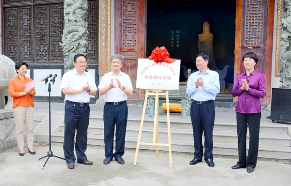 21日上午,民盟福建省委会传统教育基地揭牌仪式在湄洲岛妈祖源流博物馆举行。阮诗玮、郑春洪共同为基地揭牌。