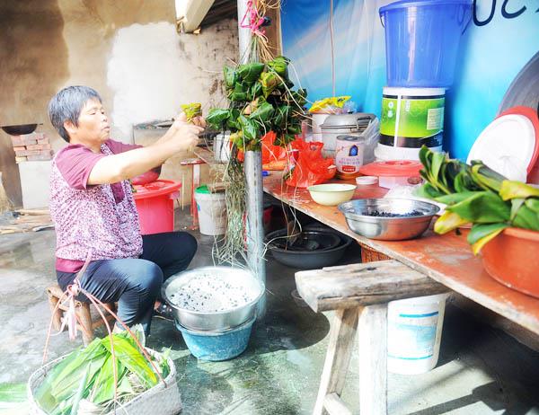图为仙游农家女在包粽子。 (陈国松)