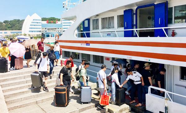 日下午,参加今年高考的湄洲妈祖中学考生集中乘船出岛往莆田第五中学考场,提前入住准备考试。
