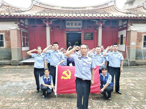 本报讯 7月1日,东峤派出所组织党员民警、网格员、巡防员前往中共闽中游击队珠江中队旧址开展“迎七一·重温入党誓词”主题红色教育活动。在活动现场,党员们参观了中共闽中游击队珠江中队旧址,观看馆内收集的革命实物,聆听了讲解员关于中共闽中游击队珠江中队党史的介绍,学习了革命先烈在恶劣环境下坚守党的信念,不怕牺牲,艰苦奋斗,不屈不挠,英勇斗争的崇高精神。最后,党员们在庄严的党旗下,同举右手,再次庄严宣誓,表达了对党的热爱和忠诚。 (何丽丽)