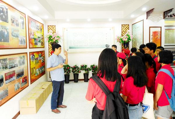 在莆田锦江中学校长、书记的带领下,西班牙华裔青少年夏令营一行人走进校史展览馆,了解侨校70多年的办学历史,感受老一辈侨胞兴学襄教的赤子情怀。接着,孩子们依次参观了莆田二十四景之一“锦江春色”、宋代“迎仙寨”遗址、学校标志性建筑“吧城堂”等景观。置身于人文与自然交相辉映的美丽校园,孩子们流连忘返、思绪翩跹。随后,在录播教室里,孩子们先后学习了中文、地理、历史等课程。在趣味盎然的课堂上,语文老师带着孩子们走进方块汉字,在一笔一划的世界中,体验中华民族的勤劳与智慧,让中国文化的种子播撒在孩子们的心田;地理老师引领孩子们畅游雄伟壮阔的祖国河山,体验多姿多彩的民族风情,激发炎黄子孙的自豪感;历史老师沿着丝绸之路,追忆华夏文明的源远流长、博大精深,一个个精彩有趣的故事,深深吸引着孩子们。武术是中华文化浓墨重彩的一笔,孩子们对中国武术充满浓厚的兴趣。在体育老师的的指导下,孩子们一招一式、有模有样的练习太极拳,沉醉在中国功夫的神奇世界中。