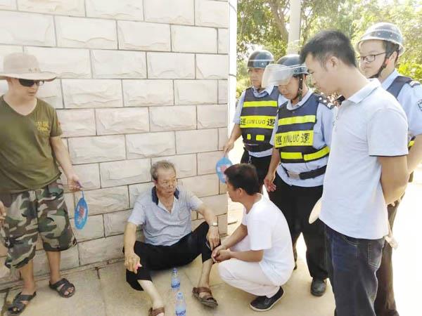 几分钟后,老人渐渐恢复意识,他告诉网格巡逻员,自己姓詹,今年71岁,笏石顶社人,上午孙女去学校报到,老人不放心偷偷跟过去,由于天气太热,走到这就晕倒了。这才有被路过的群众发现,向附近的网格巡逻员求助的一幕。