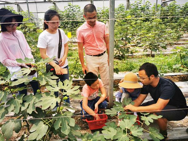 来自江西鹰潭的刘新华,2008年莆田学院毕业之后选择留在了莆田发展。一次偶然的机会,他看到了种植无花果的大好前景,2017年机缘巧合之下来到后黄开始种植无花果。由于管理到位,实现了当年种植当年结果。刘新华介绍说,“无花果树跟其他水果树不同,是自下而上成熟,果实随着树木的不断长高可以不断结果,是经济效益不错的果树。”他说,无花果香甜可口,营养丰富,对咽炎咳嗽、消化不良等有一定的食疗功效,而且还是水果中的富硒之王,被称为“结在树上的糖包子”。目前,他的近7000m2无花果将在7月底进入盛果期,预计今年产量可达3万斤左右。刘新华介绍说,园里的无花果一般是当天采摘当天售卖,一部分用于游客的采摘或者采用线上预定线下配送的模式售卖,另外一部分无花果采用深加工的方式,加工成无花果干、无花果茶等系列产品,通过电商、超市以及其他渠道进行销售。为丰富采摘园品种的多样化,刘新华还引进了青枣、甘蔗、芭乐和菠萝蜜等品种。